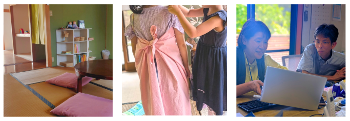 ・西畑の自然のなかで、お花をつんだり、山菜をとってふきのおにつけをつくったり、柿ジャムをつくったりして季節の豊かさを感じています。